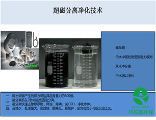 二、磁分離水體淨化技術:高(gāo)磁過濾汙水處理技術具有快速出清水(shuǐ)、淨化效率高、占地少、投資(zī)小、運行成本低、自動化程度高、資源循環利(lì)用、安(ān)全可靠等顯著優勢;同時我公司在(zài)常規磁分離技術,去除有機COD較低的弊端下,研發一種(zhǒng)活性(xìng)氧化基KBS-0H專利(lì)設備,可大幅度提高水體淨(jìng)化COD的去除率,節約後續深度處理工序,大大節約了(le)投資。