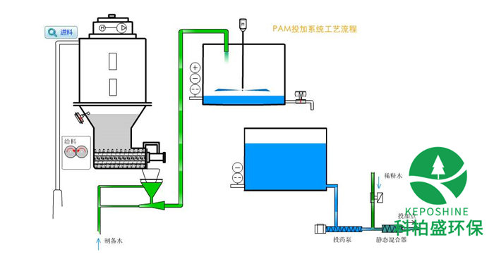 PAM粉狀藥劑溶液製備過程是(shì)通過各個溶液槽分級逐(zhú)步完成的,溶液(yè)槽之間隔開,保證每個溶液槽(cáo)內的(de)反應時間和(hé)恒定濃度,避免在預置槽和(hé)藥液儲存槽之間有任何直接通路,自動控製係統與儲存槽上的液位控(kòng)製器(qì)相連。一(yī)旦液位到達低位,觸發進水電磁閥門打開,幹擾機啟動(dòng),設(shè)備自動運行當液位達到高點,此循環過程就停止,當然攪拌器還按設定時間繼續工作。