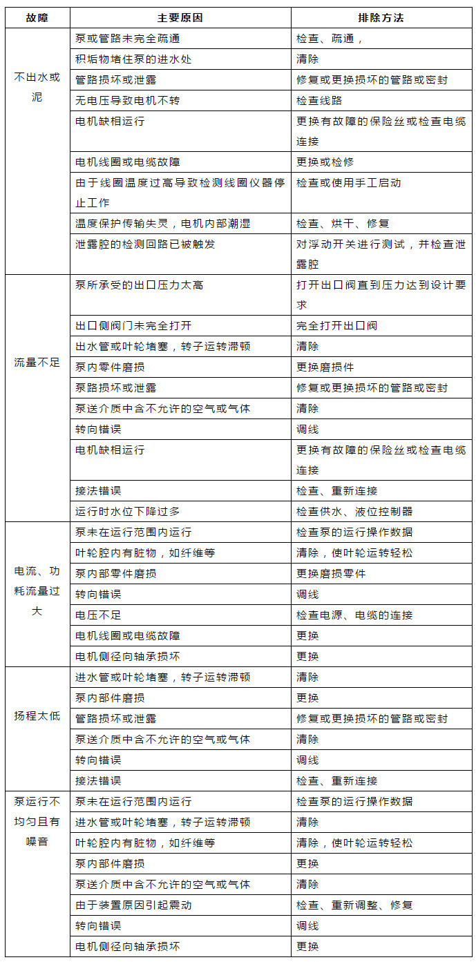 9、曝氣器及管(guǎn)路係統潛水汙水(泥)泵常(cháng)見故障(zhàng)及排除(chú)方法