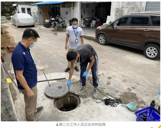 執法人員發現廠區一衛生間內有3桶氫氧化(huà)鈉(片堿)溶液在浸泡(pào)模具,衛生間內有清洗廢水流入化糞池,化糞池(chí)內的汙水已滿,並有部分汙水流入雨水井。執法人員對現場進行查封,並委托第三方檢測公司(sī)對外排廢水進行采樣檢測(cè)。